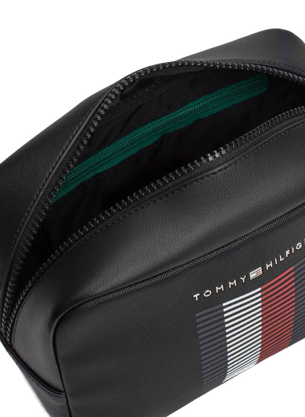 Bolsa Tommy Hilfiger Signature Mini Reporter preta para homem.