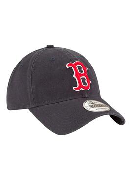 Boné New Era. Modelo Core. Cor azul marinho. Logotipo bordado em vermelho. Fita traseira para ajuste.
