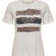Camisa Only. Modelo Lola. Cor branca. Gola redonda. Manga curta. Corte regular. Estampa gráfica de leopardo com corações.