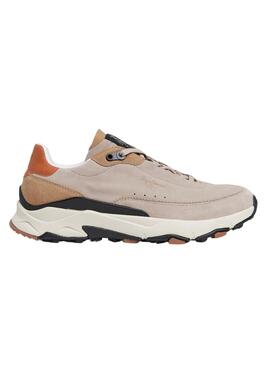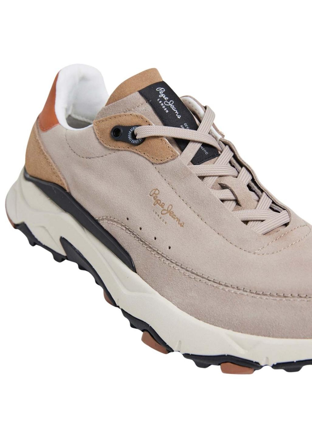 Ténis Pepe Jeans. Modelo James. Cor bege. Encerramento com cordões. Logotipo estampado lateral. Microperfurações nos lados. Logotipo em relevo 1973 no calcanhar. Palmilha termoformada e removível em espuma. Sola volumosa.