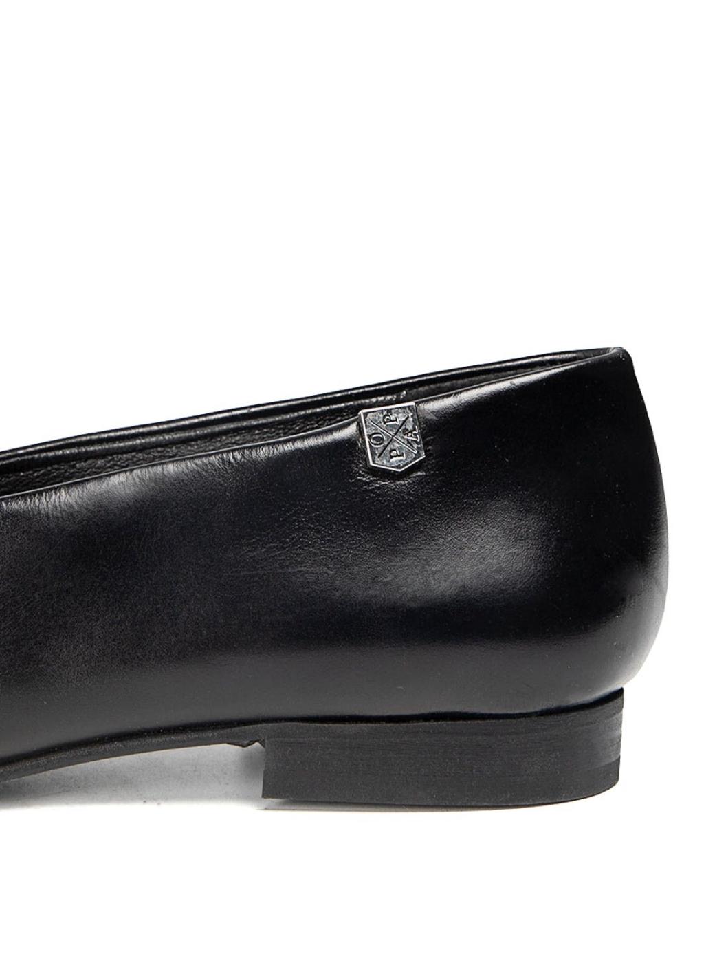 Sapatilhas Popa. Modelo Anabel. Cor preta. Salto de 2cm de altura. Palmilha acolchoada de couro vegano. Sem fecho. Logo metálico. Peso: 400gr.