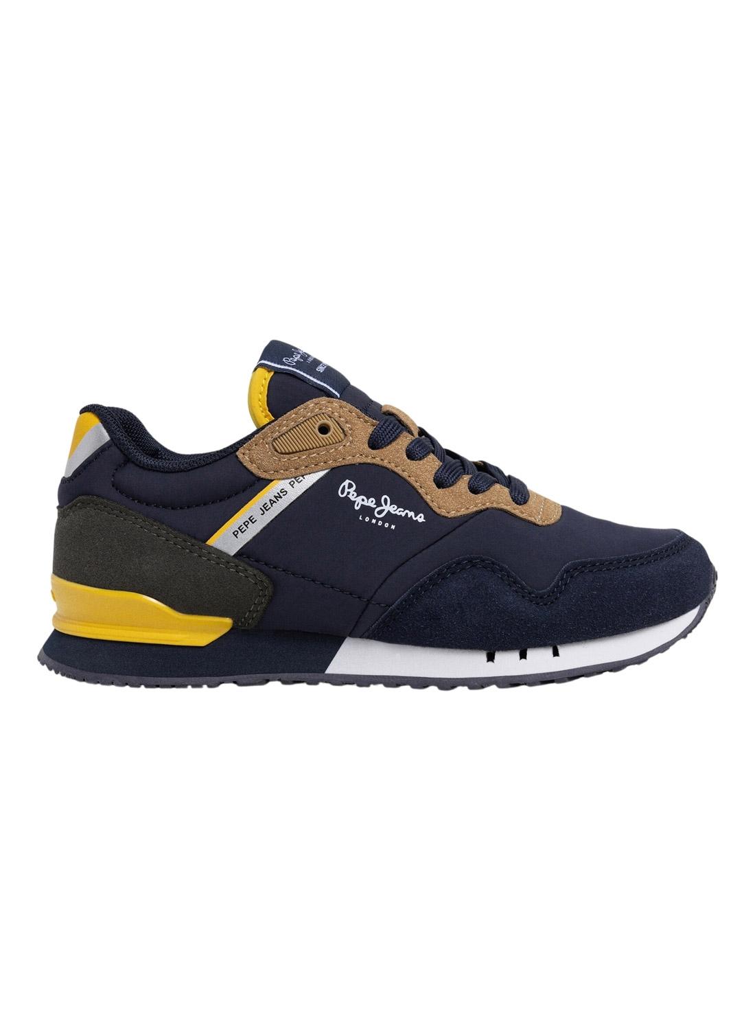Sapatilhas Pepe Jeans. Modelo London Class. Fecho de cadarços. Logotipo da marca do lado. Combina vários materiais.