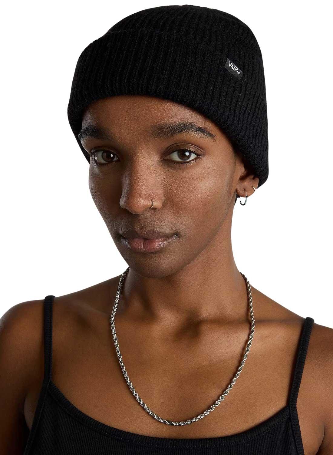 Gorro Vans. Cor preta. Modelo Tagged. Baixo com virada. Curto. Etiqueta da marca na frente.