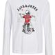 Camiseta Jack and Jones. Modelo Skull. Cor preta. Manga comprida. Gola redonda. Ajuste regular. Ilustração na frente. Detalhes em laranja.