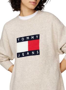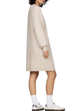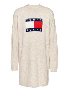 Vestido Tommy Jeans lã bandeira bege para mulher