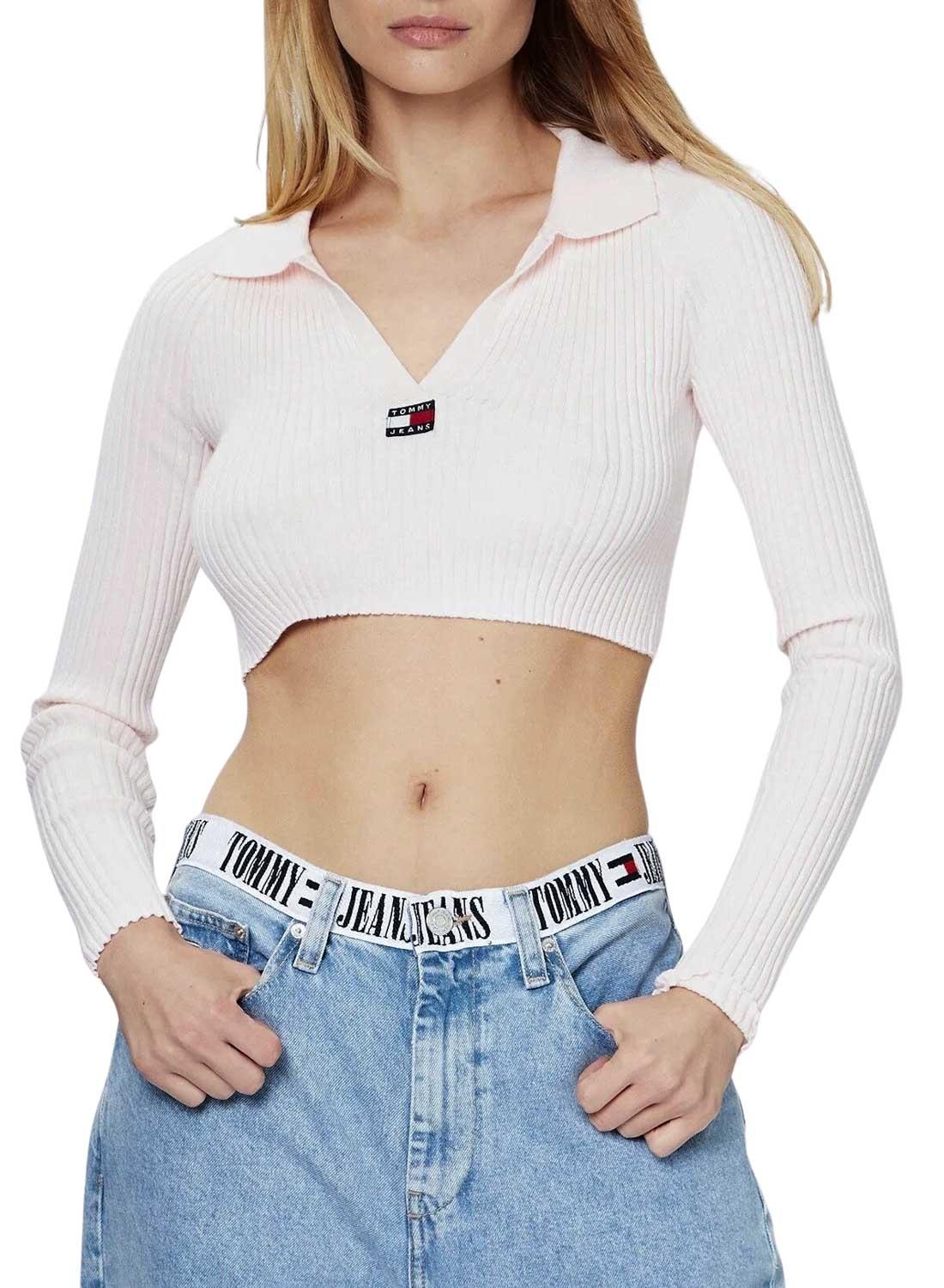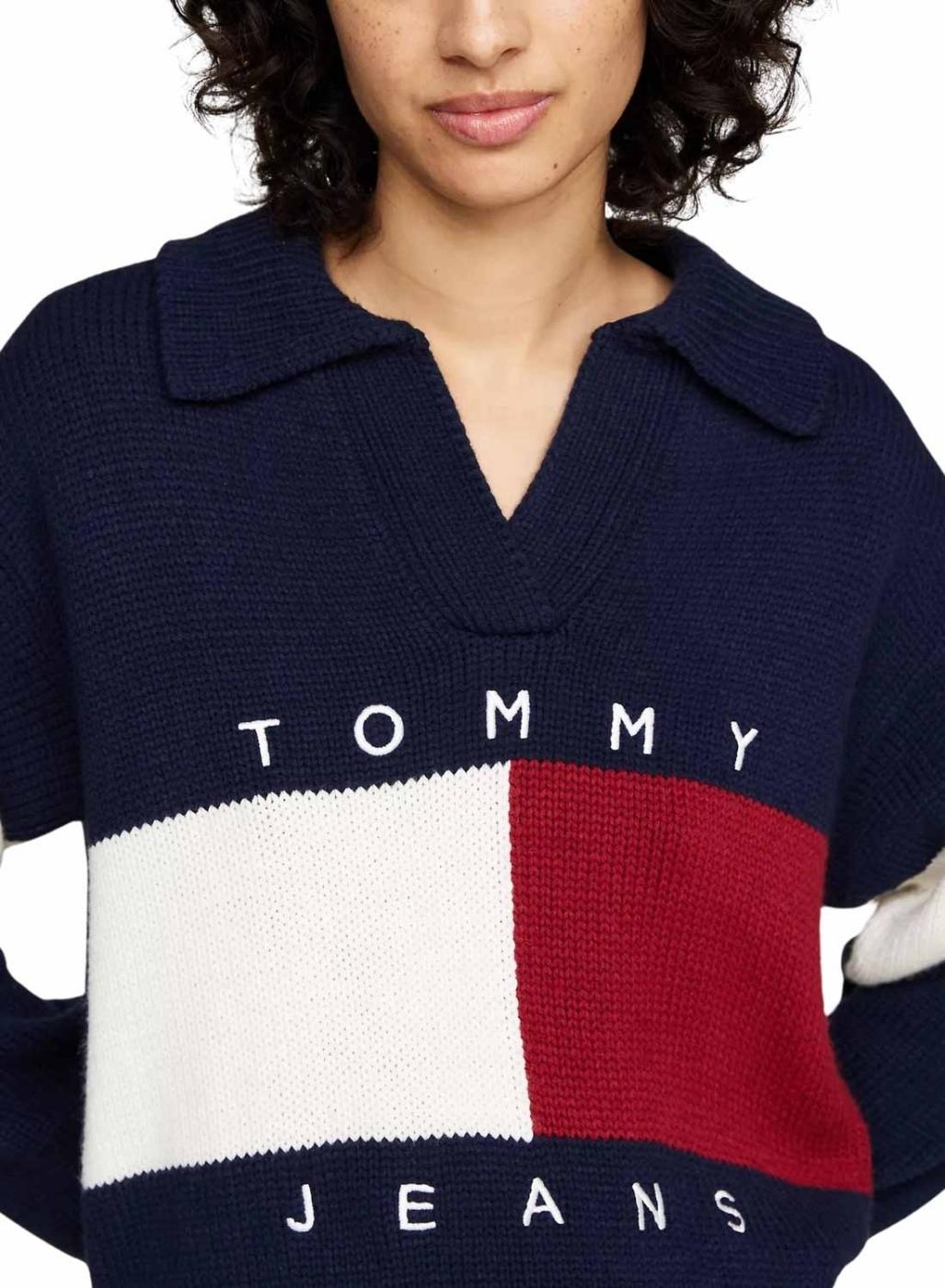 Suéter de malha Tommy Jeans de gola alta com listras para mulher