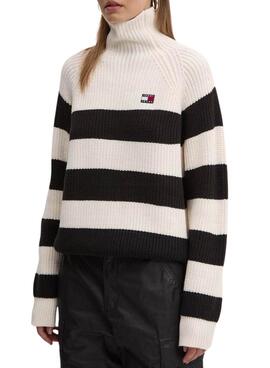 Suéter de malha Tommy Jeans de gola alta com listras para mulher