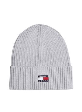 Touca Tommy Jeans. Cor cinza. Tecido de malha elástica. Patch da Tommy na frente. Com dobra. Medidas: 22 x 21 cm.