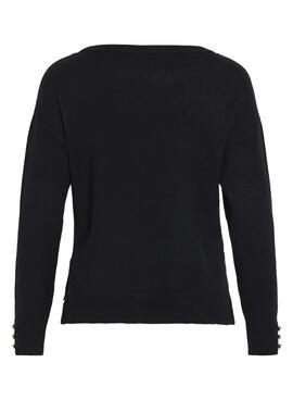 Camisola Vila. Modelo Vicomfy. Cor preta. Gola redonda. Extremidades caneladas. Ajuste regular. Botões decorativos nas extremidades das mangas. Ajuste regular.