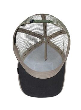 Boné Goorin Bros. Modelo The Bandit. Cor taupe. Patch com coyote bordado na frente. Parte traseira em malha respirável. Parte da frente lisa. Correia traseira ajustável.