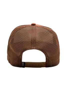 Boné Goorin Bros. Modelo The Wildcat. Cor marrom. Patch com tigre bordado na frente. Parte de trás em malha respirável. Frente lisa. Alça traseira ajustável. Etiqueta lateral da marca.