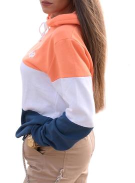 Sweat Rompiente. Modelo Fonfo. Design ou painéis con em laranja, branco e azul. Hood Cabo ajustável. Logo estampado no peito.