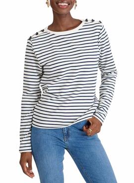 Camiseta Naf Naf Listrada Marinha com Botões para mulher