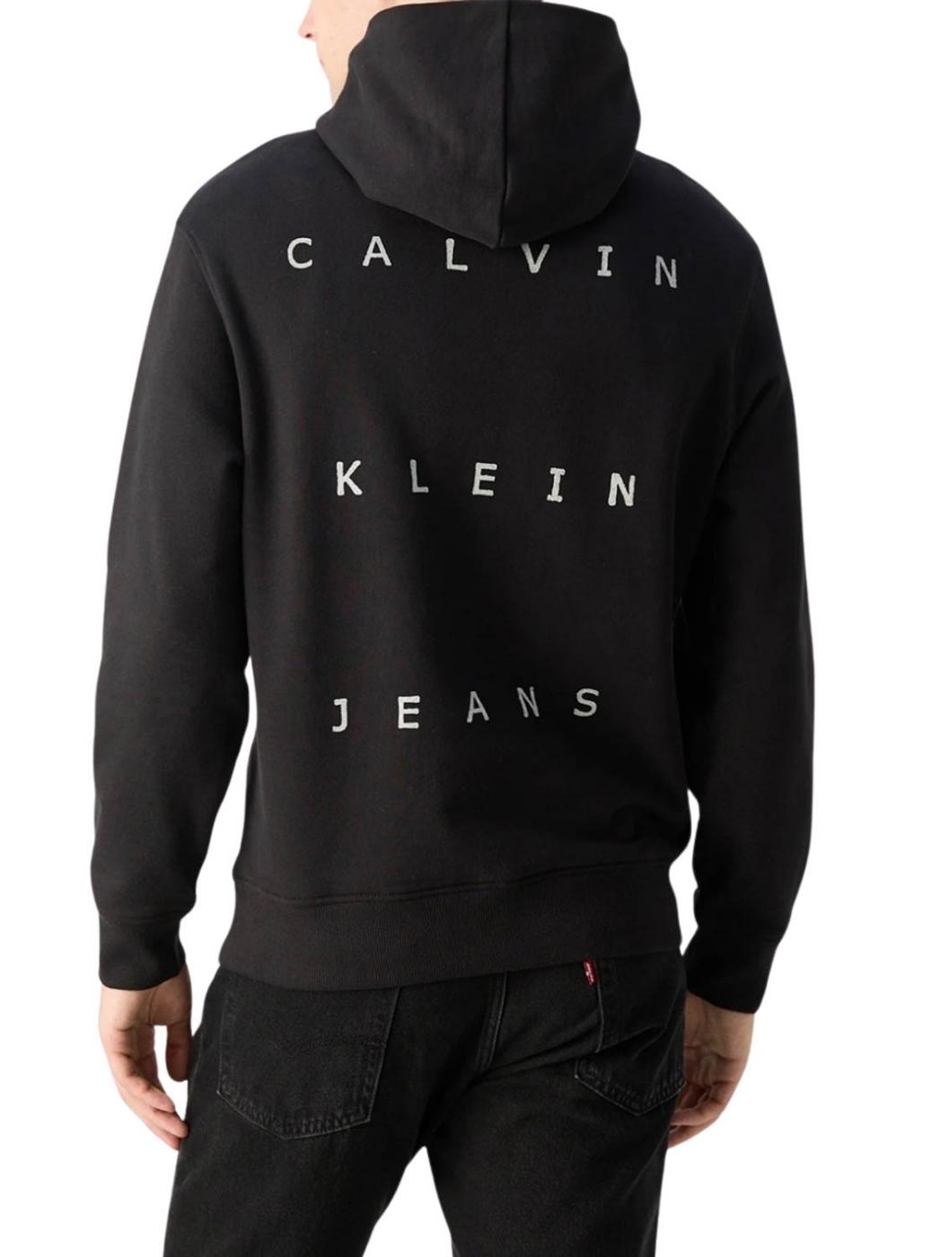 Moletom Calvin Klein Jeans. Modelo Stamp. Cor preta. Com capuz. Logo estampado no peito. Marca estampada nas costas. Ajuste regular. Extremidades caneladas.