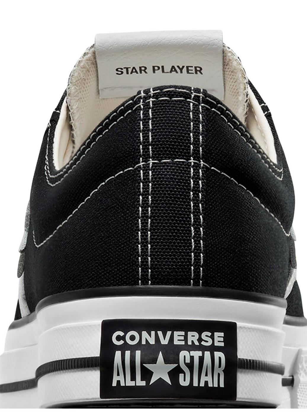Tênis Converse. Modelo Star Player 76. Cor preta. Fechamento com cadarço. Logo lateral. Biqueira de borracha.