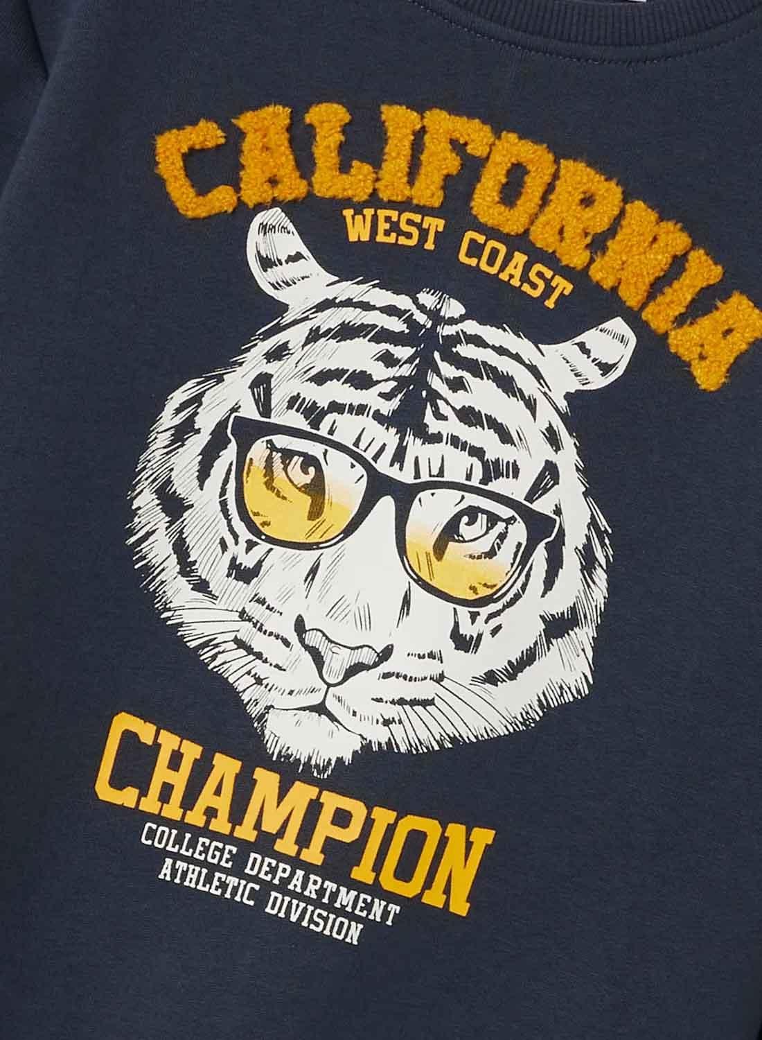 Moletom Name It. Modelo Obanno. Cor cinza escuro. Sem capuz. Manga comprida. Estampado na parte da frente. Mangas raglã. Punhos canelados. Corte folgado.