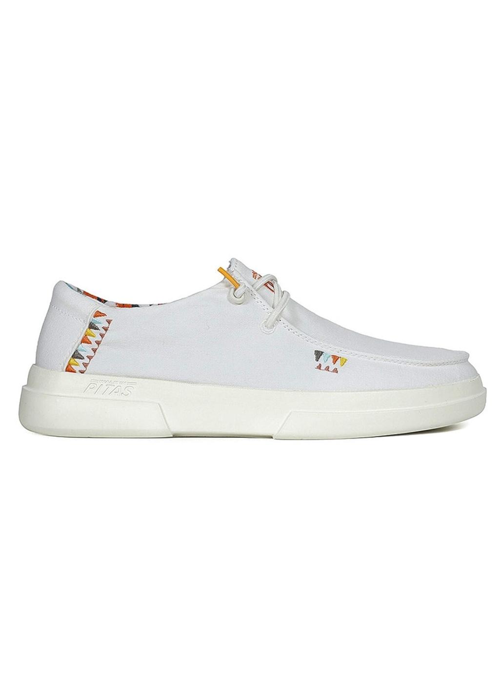 Sapatilhas Walkin Pitas. Modelo Java. Cor bege. Feito em couro hidrofugado resistente à água. Sola WAV de EVA. Sola de borracha antiderrapante. Palmilha acolchoada. Forro respirável. Palmilha removível de EVA PITAS-COMFORT com palmilha de couro.