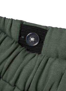 Calça de fato de treino Name It. Modelo Simon. Cor verde escuro. Encerramento com cordões. Cintura ajustável. Fundo elástico. Bolsos de carga. Detalhe de costuras.