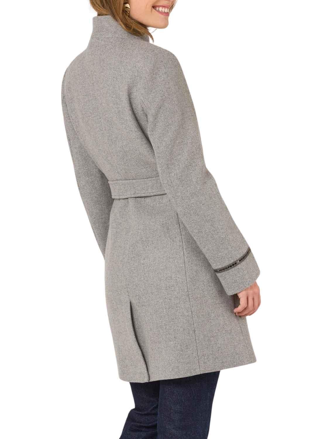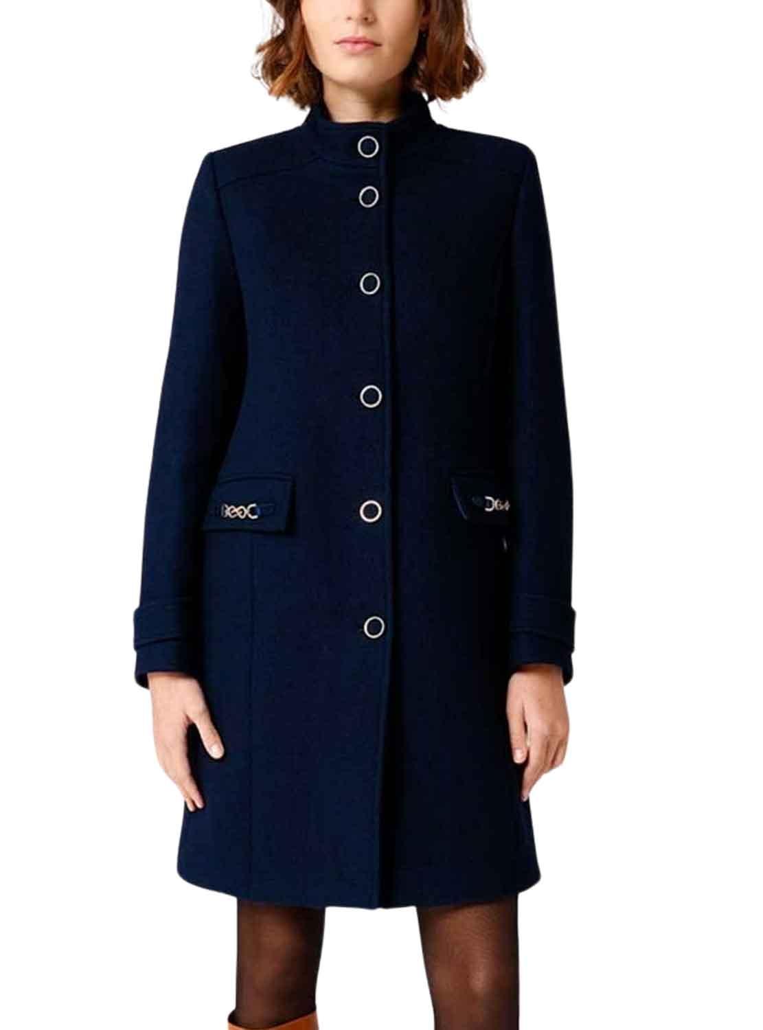 Parka Naf Naf. Manga longa. Com capuz com cordões. Acabamento de pelo sintético. Bolsos com zíper. Cor bordô. Cintura ajustável com cordões. Fecho frontal com zíper e botões. O modelo veste o tamanho 36.