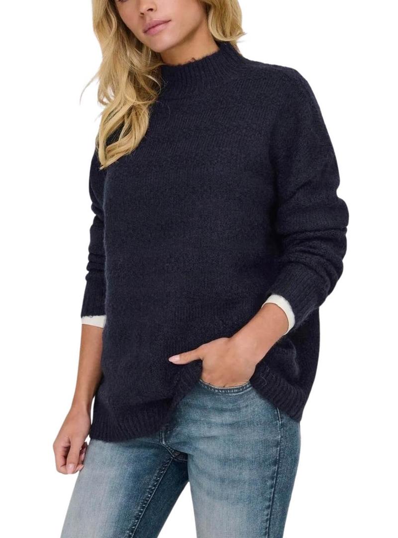 Camisola Only. Cor marinha. Tecido de malha macio e confortável. Manga comprida. Gola alta. Acabamentos canelados. Corte regular. Comprimento longo. Com mais de 50% de poliéster reciclado.