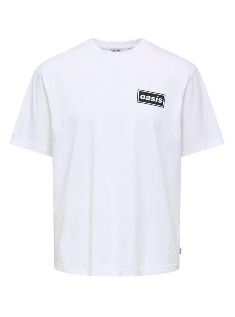 Camiseta da Only and Sons Oasis Definitely Maybe branca para homem.