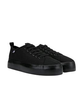 Sapatilhas Walkin Pitas. Modelo Cloe. Cor preta. Encerramento com cordões. Etiqueta lateral da marca. Sola de borracha combinando. Plataforma de 5cm de altura.