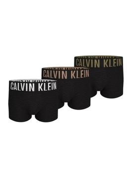 Pack 3 cuecas Calvin Klein Trunk preto com logotipo multicolorido para homem.