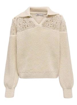 Camisola Apenas. Malha tricotada. Gola polo. Manga comprida. Detalhes bordados. Acabamentos canelados. Formato regular.