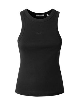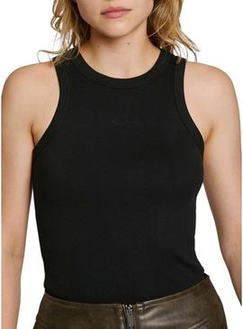 Top Pepe Jeans. Modelo Marian. Estilo regata. Gola redonda. Sem mangas. Tecido canelado. Corte ajustado. Logo bordado em tom no peito.