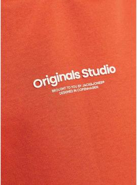 Moletom Jack and Jones. Cor laranja. Corte folgado. Com capuz. Manga comprida. Logo Originals no peito. Acabamentos canelados. Bolso canguru. Ombros caídos.