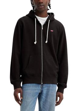 Moletom Levis. Modelo The Original Zip. Cor preta. Fecho com zíper metálico. Capuz com cordão ajustável em contraste. Logo bordado no peito. Bolsos laterais. Extremidades caneladas. Ajuste regular. Estilo básico.