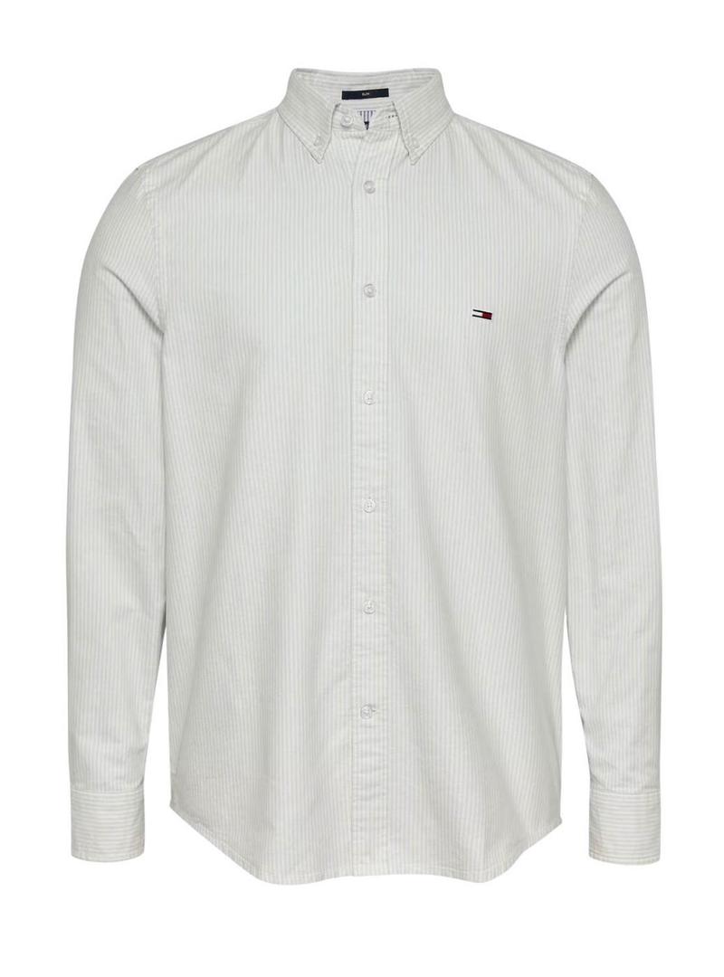 Camisa Tommy Jeans Stripe Oxford branca para homem.