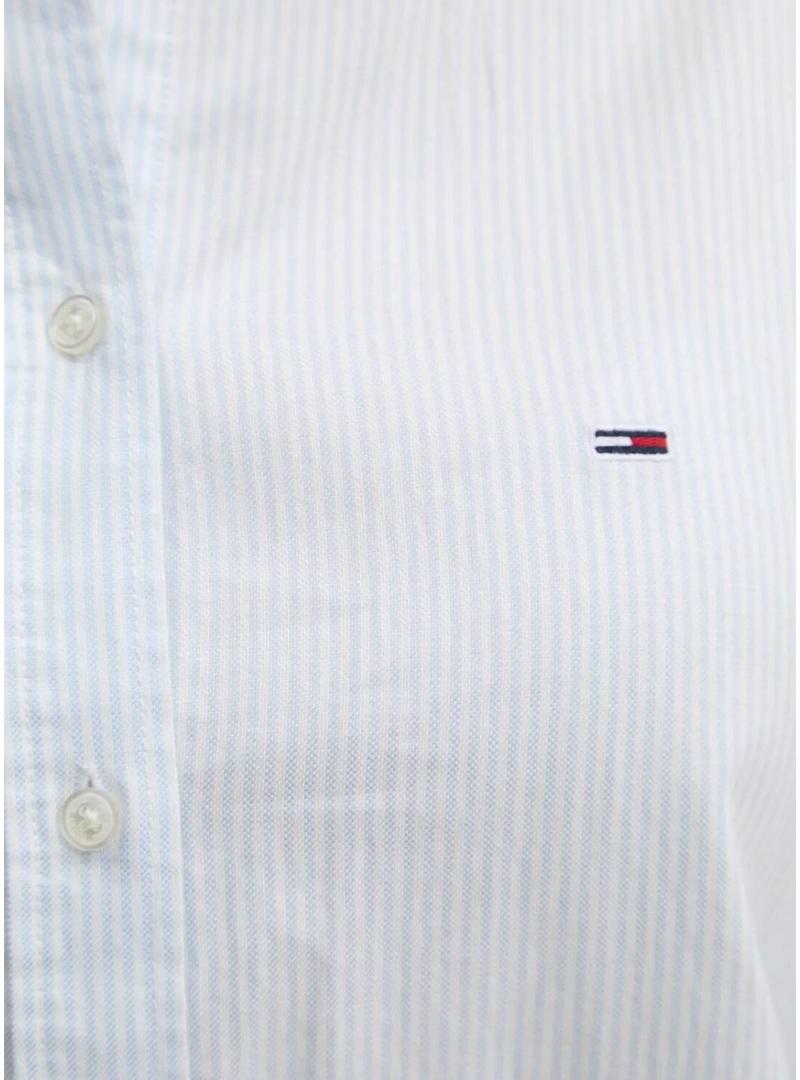Camisa Tommy Jeans Oxford listrada azul para mulher