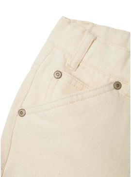 Calça de ganga Name It. Cintura ajustável com botões no interior. Cor bege. Fecho com zíper e gancho. Corte reto. Cintura regular. Estilo carpinteiro.