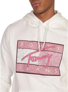Moletom Tommy Jeans. Modelo DNA. Cor branca. Manga comprida. Bolso canguru. Bandeira da marca no peito. Capuz ajustável com cordão. Ajuste regular.