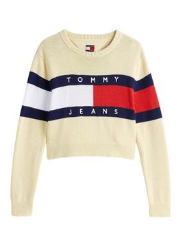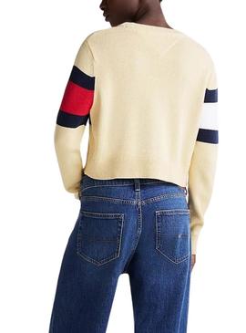 Camisola Tommy Jeans Center Flag amarelo para mulher.