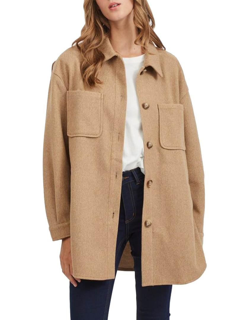 Jaqueta Vila. Modelo Mey. Fechamento por botões. 4 bolsos. Tecido jeans. Ajuste folgado.