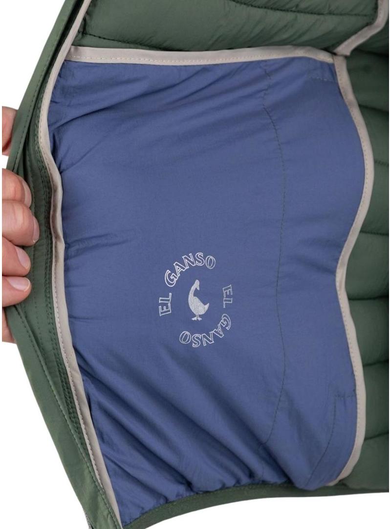 Colete El Ganso. Modelo acolchoado. Cor verde. Gola alta. Tecido repelente à água. Slim Fit. Fecho de correr com detalhe de bandeira. Cava elástica. Dois bolsos frontais com fecho de correr. Bolso interior adicional. Logotipo em relevo no peito.