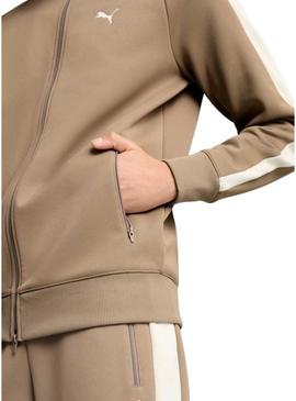 Jaqueta Puma. Modelo Always On. Cor marrom. Fecho de zíper. Faixas em contraste nas mangas. Logo da marca no peito. 2 bolsos com zíper.