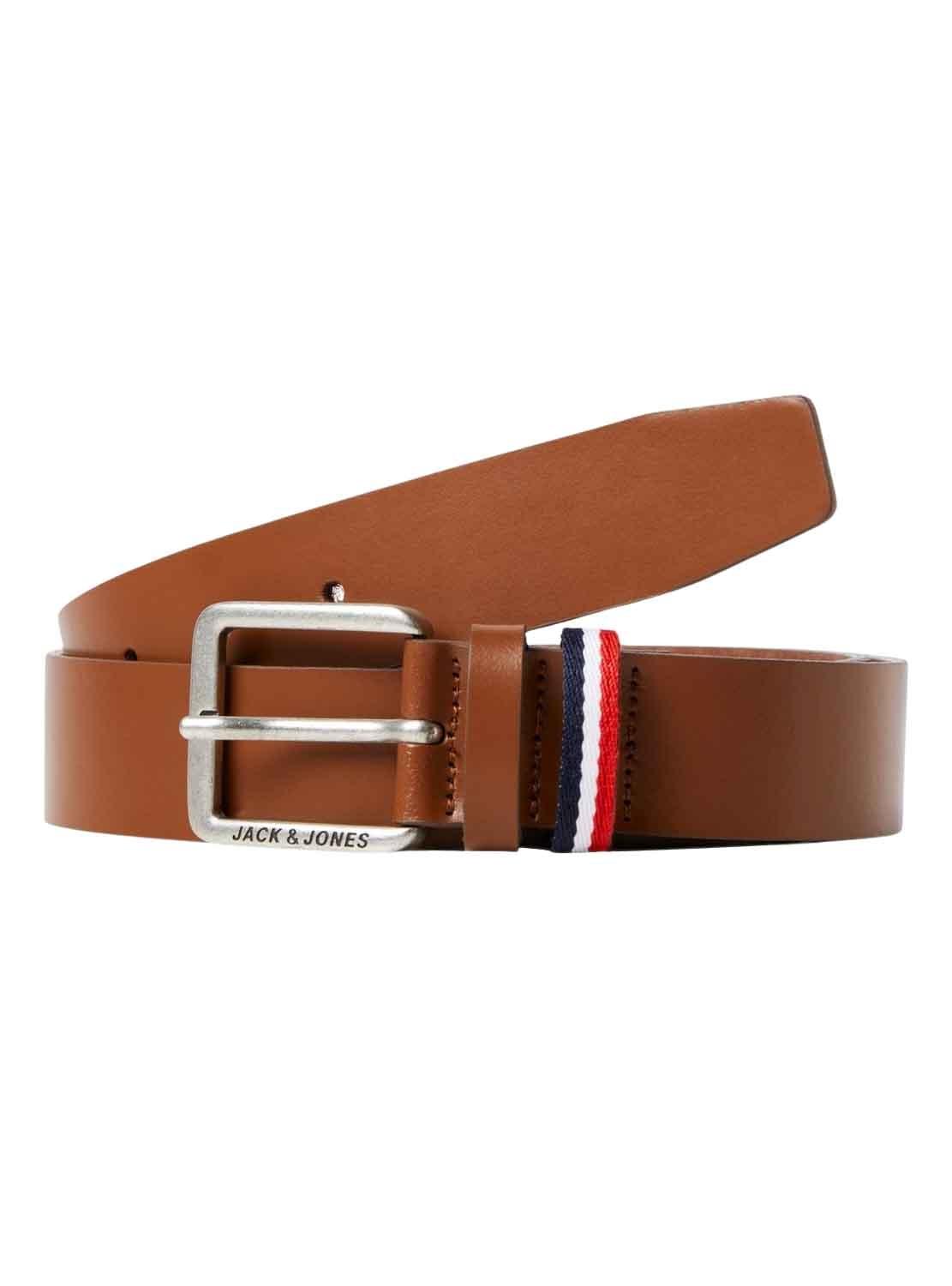 Cinto Jack and Jones. Modelo Paul. Cor marrom. Fivela metálica. Largura de 4 cm.