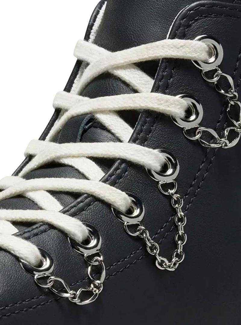 Sapatos Converse. Modelo Chuck Taylor All Star Premium Party. Cor preta. Cano alto. Parte superior em pele premium. Correntes decorativas.