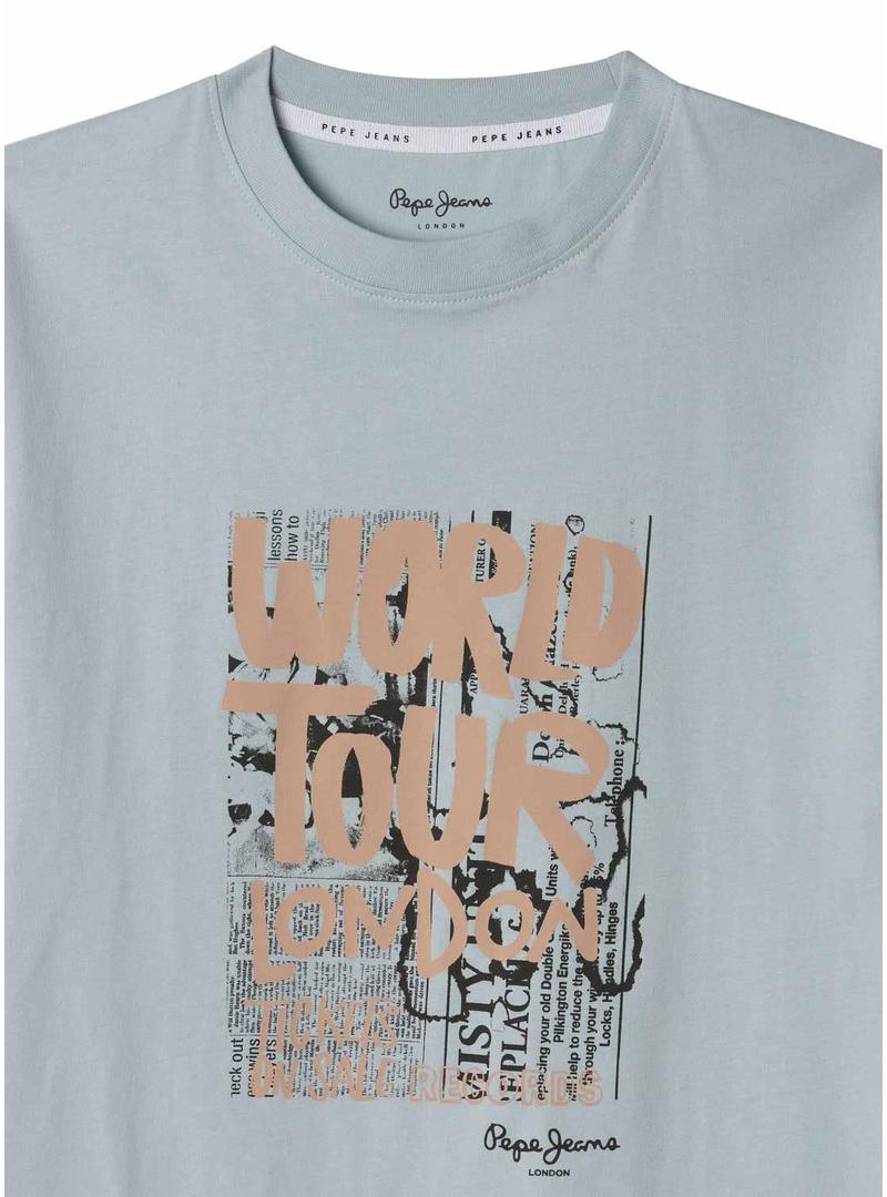 Camiseta Pepe Jeans. Modelo Tobiah. Cor azul. Gola redonda. Manga curta. Ajuste regular. Ilustração na frente.