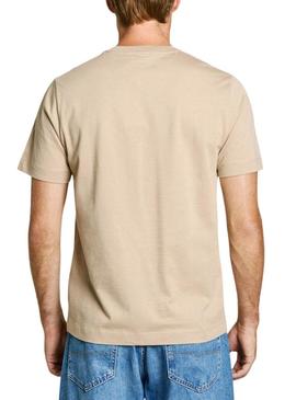 Camisa Pepe Jeans. Modelo Dalter. Cor bege. Gola redonda. Manga curta. Logótipo estampado no peito. Ajuste regular. Detalhes em cinza.