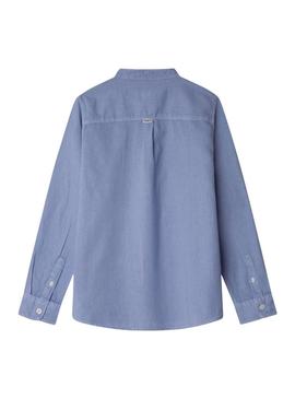 Camisa Pepe Jeans. Modelo Camdem. Cor azul. Estilo camiseta. Gola mandarim. Fechamento com botões até a metade do corpo. Logo bordado no peito. Ajuste regular. Estilo básico.