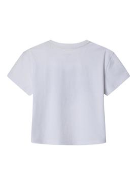 Camiseta Pepe Jeans. Modelo Anna. Cor branca. Gola redonda. Manga curta. Ilustração estampada no peito.