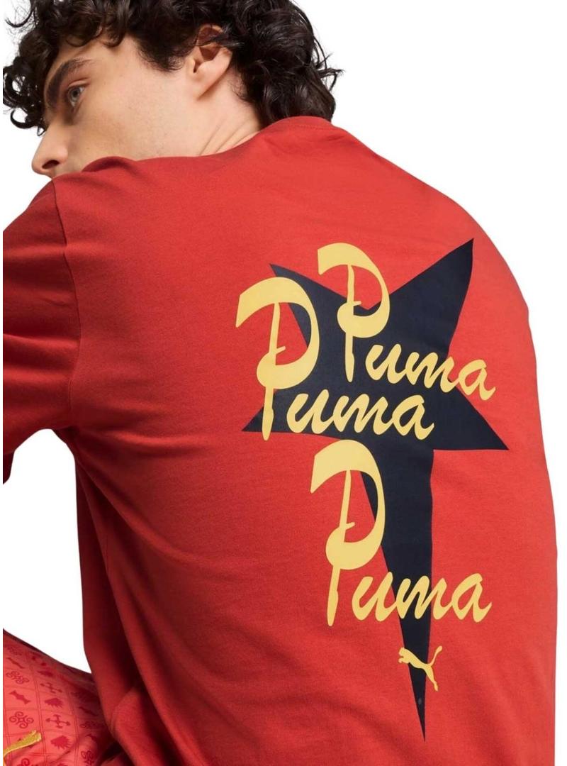 Camiseta Puma. Modelo Road To Unity. Cor vermelha. Detalhes da marca estampados no peito e nas costas. Corte regular.
