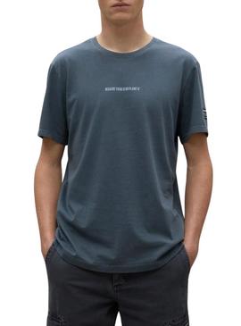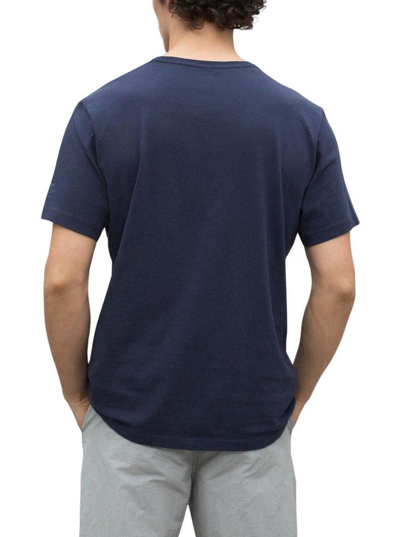 Camiseta Ecoalf. Cor marinho. Gola redonda. Manga curta. Ajuste regular. Feito com algodão reciclado. Logo ECOALF na manga. O modelo veste tamanho M.