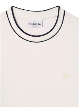 Camiseta Lacoste bege com gola listrada para homem.