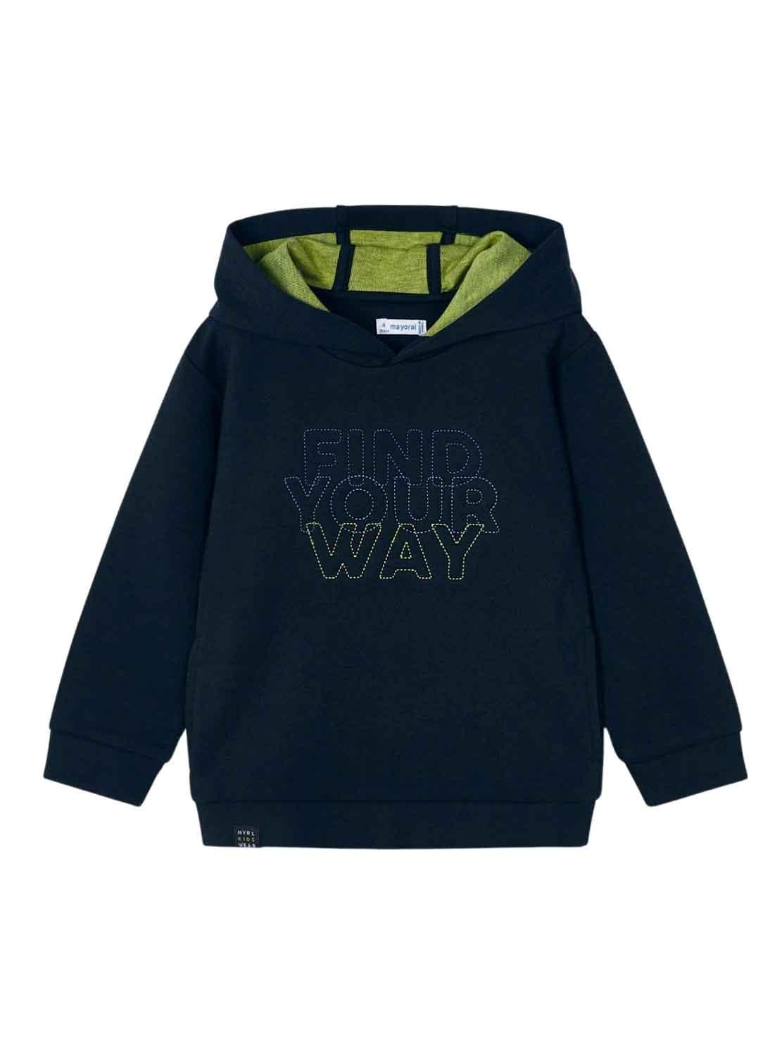 Moletom Mayoral com capuz azul com estampa de letras para menino.
