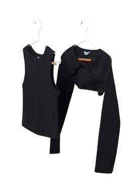Conjunto Mayoral. Duas peças. Cor preta. Regata. Gola redonda. Tecido canelado. Com bolero de manga comprida. Gola redonda.